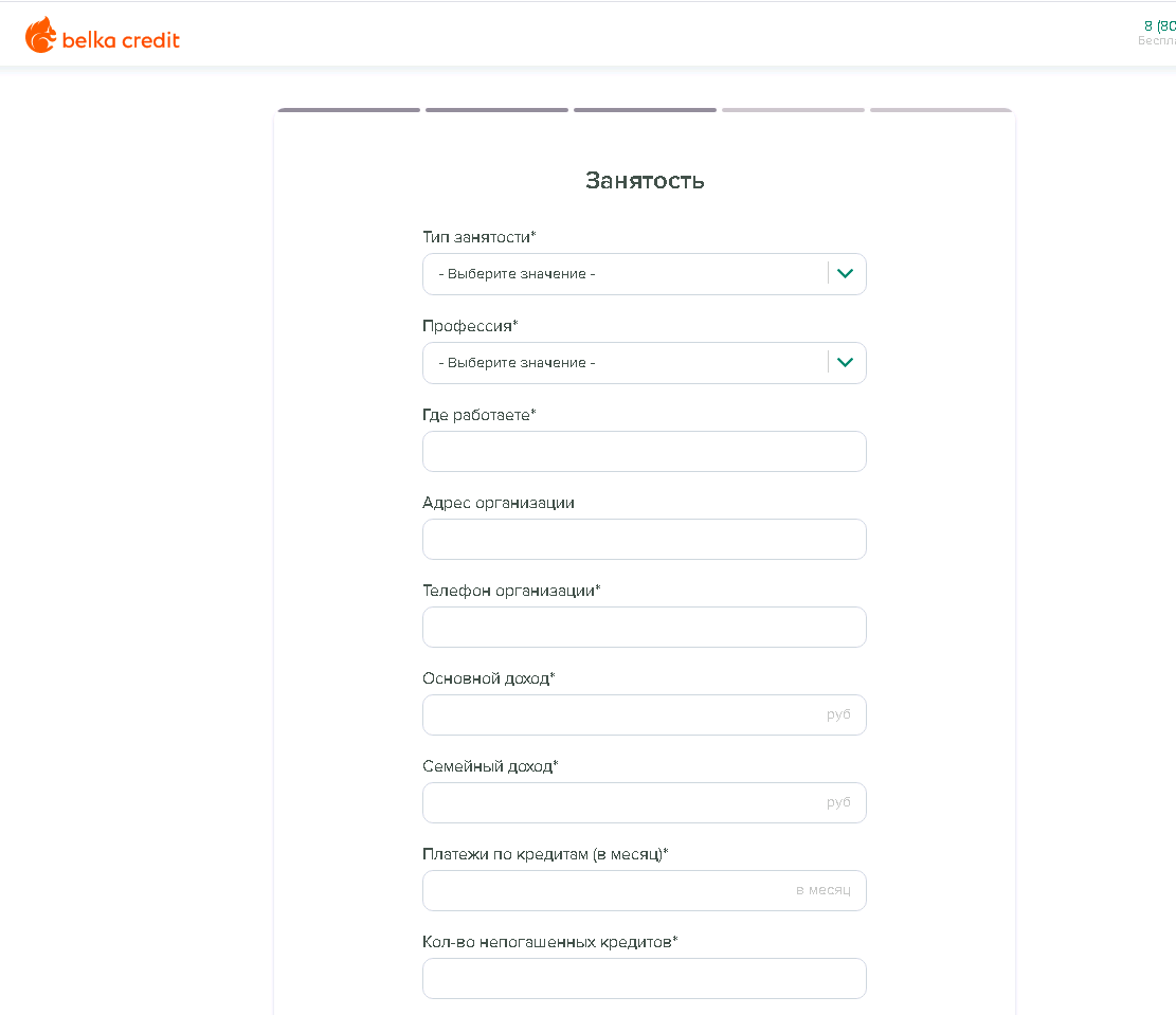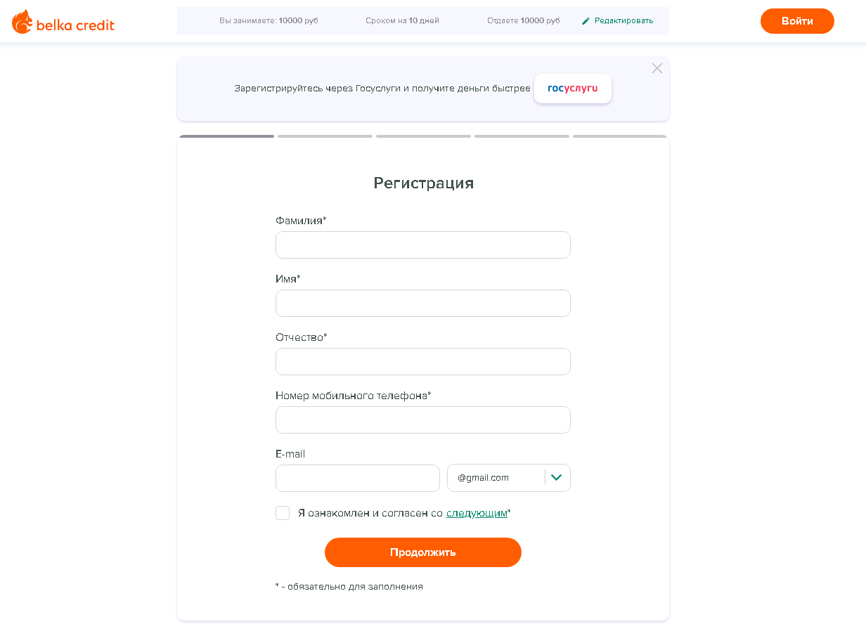 Belka credit выдает онлайн займы на банковскую карту и на расчетный счет. Наибольшим спросом у заёмщиков пользуется именно первый вариант получения денег не выходя из дома. Оформление также происходит онлайн. При первом обращении потребуется зарегистрироваться и заполнить анкету. Для регистрации нужно указать ФИО и номер телефона, либо воспользоваться аккаунтом ГОСУСЛУГ.