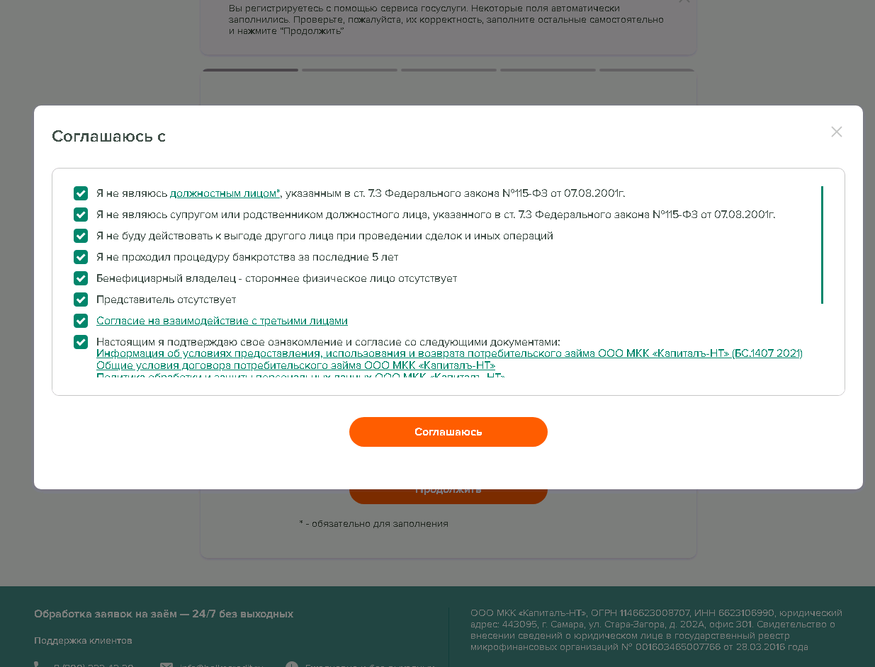 При оформлении займа на первой странице нужно нажать в месте проставления галочки на "следующие условия" и убрать галочки на пунктах, которые Вы не одобряете, а именно реклама и согласие на взаимодейтсвие с 3 лицами