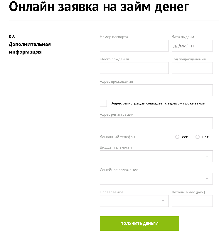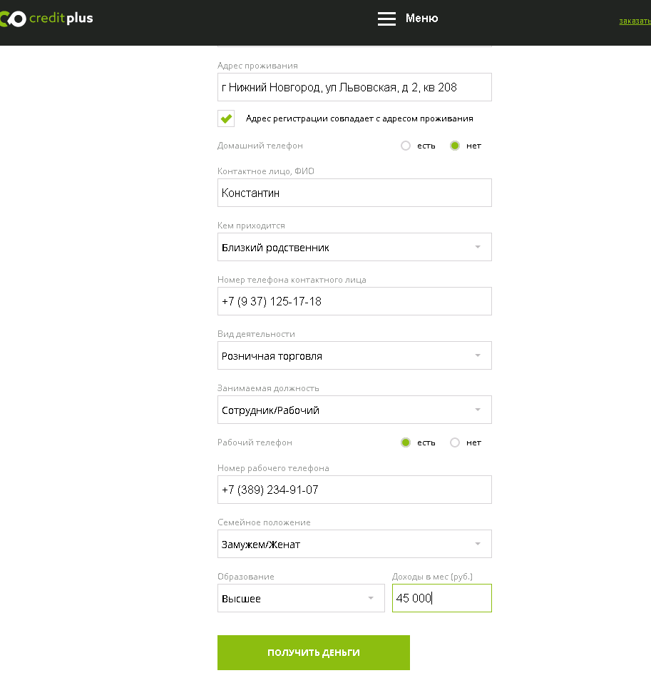 Анкета очень маленькая, всего 2 страницы, информации для заполнения минимум, паспорт, место жительства, рабочий номер телефона и контактное лицо.