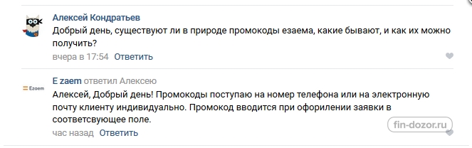 Е-заем официально не анонсирует промокоды, и не выкладывает их в открытые источники, по примеру других МФО, которые дают промокоды в своих официальных группах в соцсетях, или на иных ресурсах. Сотрудники компании комментируют это так: "промокоды существуют, но высылаются персонально каждому заёмщику отдельно на личную электронную почту". К сожалению, проверить данную информацию нам не удалось. Промокоды найденные в интернете являются обычными ссылками на сайт МФО, и не дают никаких преимуществ перед обычным обращением. Следовательно, любые промокоды “Е заем”, найденные в интернете, недействительны.