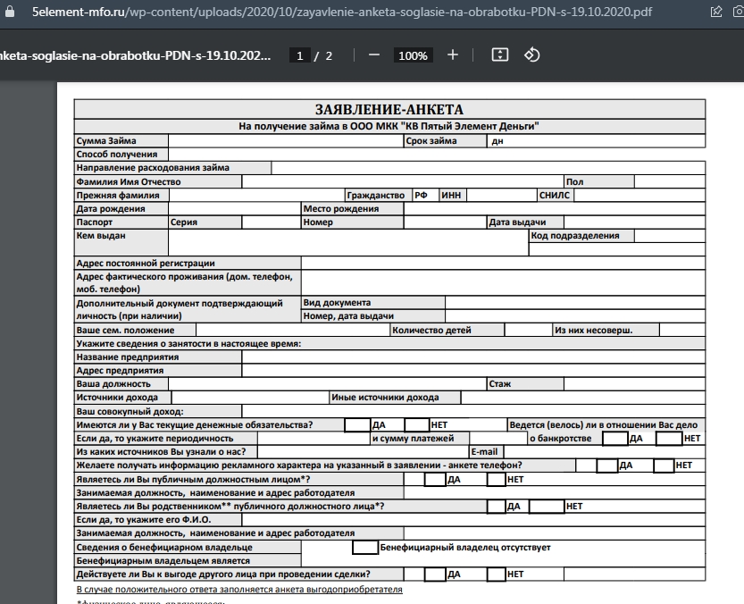 Что же касается анкеты, с её содержанием можно ознакомиться ниже: