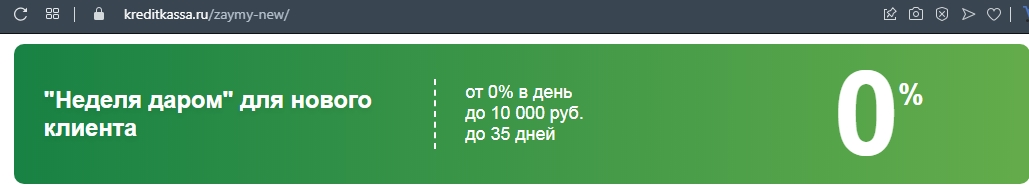 При оформлении займа сроком от 31 дня новых клиентов действует предложение "Неделя Даром". С 22 по 28 день проценты по выданному займу не начисляются проценты (0%). Странно то, что данная услуга описана в тарифах компании, а не акциях.