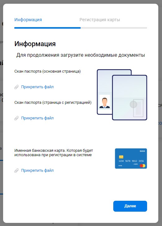 Идентификация происходит при момощи СНИЛС, фотографий паспорта и карты и звоноком оператора.