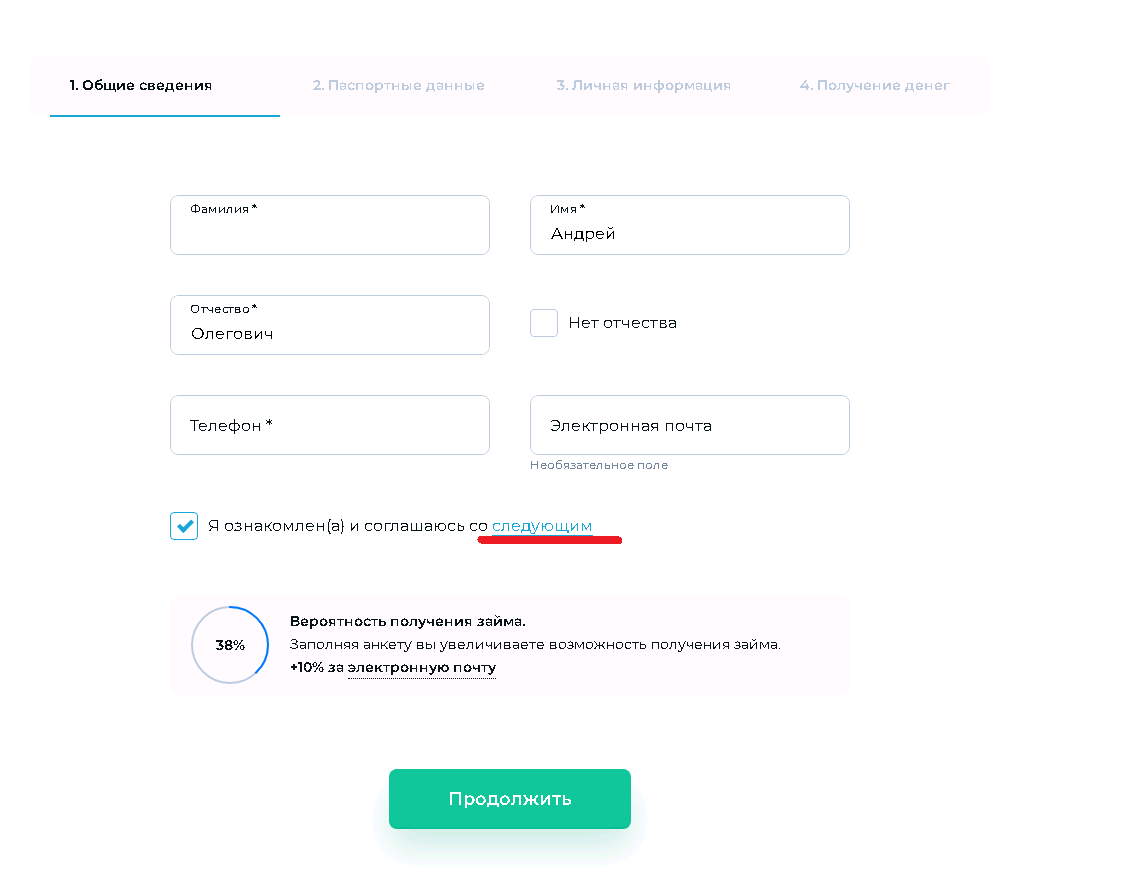 Анкета простая, ничего лишнего. Паспортные данные, прописка, контактное лицо и банковская карта. Её можно заполнить через Госуслуги. На первой странице анкеты нажимаем на кликабельный текст с условиями и снимаем там галку об уступке кредитором права требования по займу третьим лицам (это чтобы коллекторам не отдавали).